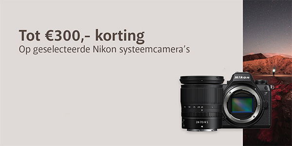 Krijg nu tot €300 korting op geselecteerde Nikon systeemcamera's!